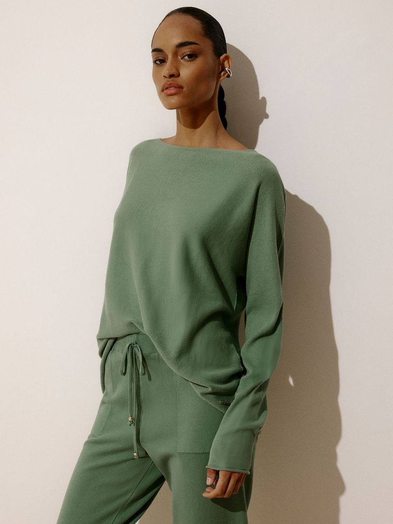 Criada em parceria com a influenciadora Consuelo Blocker, a blusa Anselmi é sinônimo de conforto e elegância. O tricô sem costura tem shape amplo, decote canoa e caimento perfeito no corpo. Combine com a calça no mesmo tom para uma produção monocromática e cheia de charme.