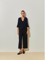 O conforto está sempre em alta, não importa a estação. Feita em Modal a blusa com decote em V é tricotada em máquinas especiais, de onde sai praticamente pronta e sem nenhuma costura. Seu shape amplo é democrático e faz um conjunto harmônico e elegante com as nossas calças de tricô.