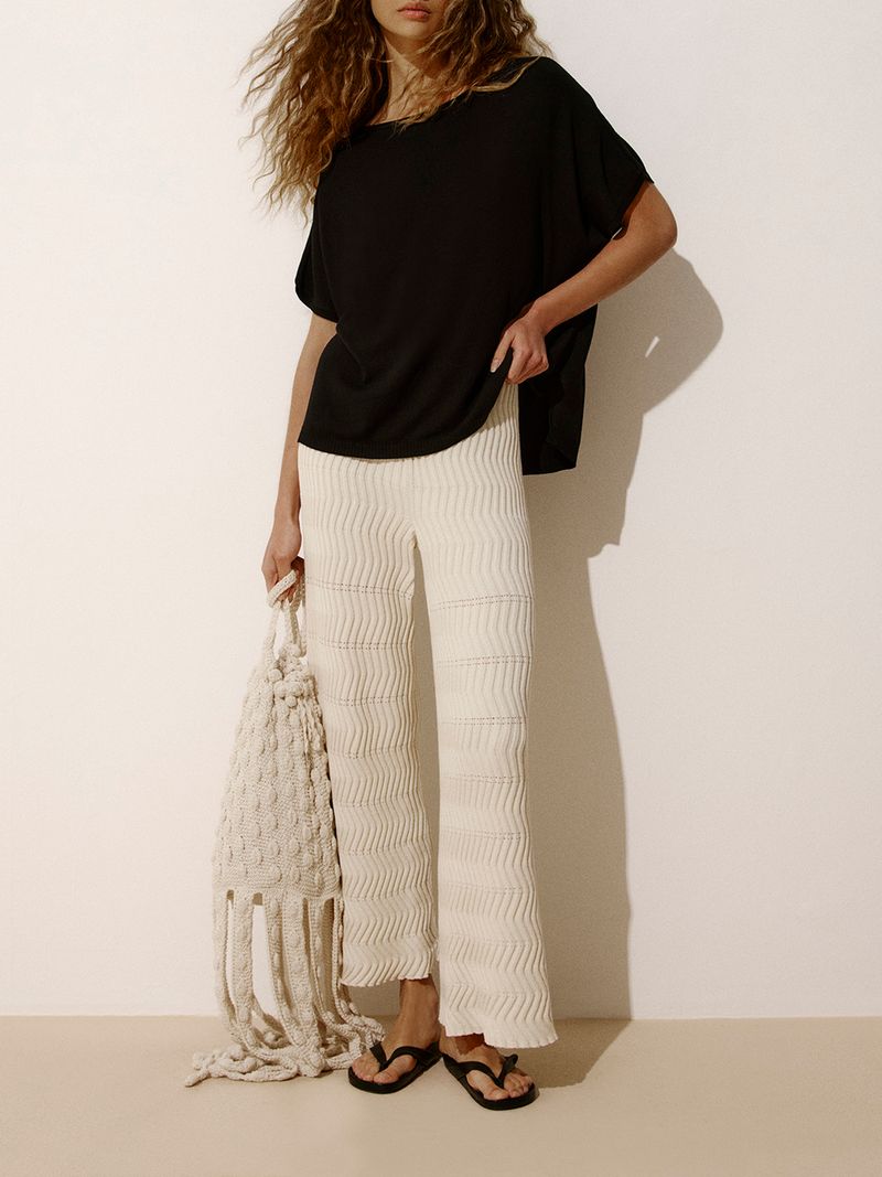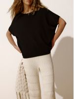 A t-shirt com decote canoa possui modelagem soltinha, manga curta e é feita em fios de micromodal. Feita em tricô 3D, a peça sem costura possui acabamento em mullet nas costas. É tudo o que você precisa para completar seus looks de meia-estação com conforto e estilo.