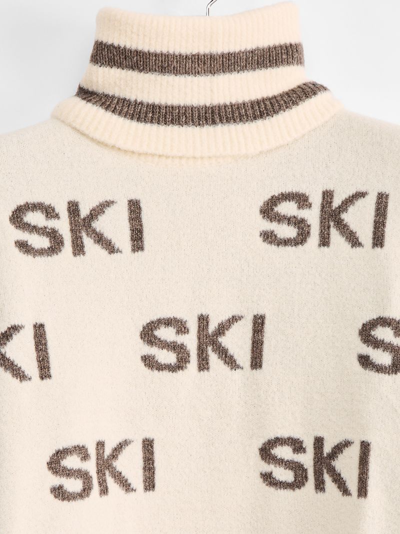 Inspirado no estilo sofisticado dos Alpes, o suéter em jacquard combina o estilo esportivo com o aconchego do tricô. A peça possui manga longa, gola alta e modelagem reta. Combine com o macacão canelado para o perfeito look après-ski.