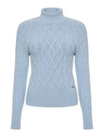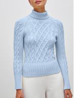 Blusa Mix de Tramas com Gola Alta Azul Celeste