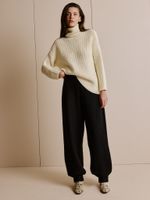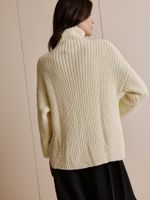 Nada é mais gostoso do que vestir o aconchego de uma peça em 100% lã. Com detalhe em gola chaminé, o suéter em ponto pérola aquece e traz o visual do handmade para os looks de après-ski.
