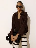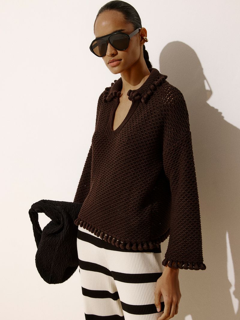 Na medida certa para looks modernos e frescos, a blusa em ponto tear tem modelagem ampla e decote em V com gola polo. O acabamento em ponto blimblom traz movimento e charme extra à peça, que é perfeita para compor com jeans e calças em linho.