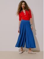 Leve e sofisticada, a calça plissada Anselmi + Ucha Meirelles possui modelagem ampla e cintura alta elástica. Combine com tramas lisas ou camisas fluídas para um look fresco e elegante.