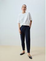 A calça de tricô Anselmi é desejo o ano todo. Feita em fios de algodão com um toque de elastano e cintura elástica, a peça oferece conforto sem igual e total liberdade para os seus movimentos. A barra italiana (dobrada) fica soltinha na altura do tornozelo para compor com rasteira, salto alto ou tênis.
