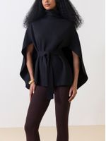 Com linhas limpas e caimento elegante, a capa minimal combina estrutura e fluidez. A modelagem ampla ganha definição com o amarração na cintura, criando uma silhueta sofisticada. A gola chaminé completa o visual com charme atemporal.