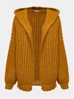 Nada é mais gostoso do que vestir o abraço do tricô. Com modelagem ampla e detalhe em capuz, o casaco em ponto londres aquece e traz o visual quentinho do tricô handmade para os looks do dia a dia.