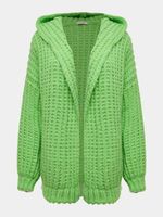 Nada é mais gostoso do que vestir o abraço do tricô. Com modelagem ampla e detalhe em capuz, o casaco em ponto londres aquece e traz o visual quentinho do tricô handmade para os looks do dia a dia.