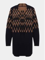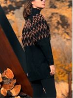 Confeccionado em fio pêlo, o casaco jacquard é uma das peças desejo de Anselmi Vals. Sua trama gráfica em tons terrosos remete ao aconchego da montanha e traz um toque vintage para os looks de inverno.
