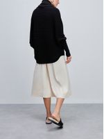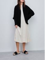 O casaco casulo ganha uma nova versão nesta temporada. Confeccionado em ponto links, ele traz textura e aconchego para as produções do dia a dia. Com modelagem ampla e cava morcego, é a terceira peça ideal para criar sobreposições com regatas, vestidos ou camisetas.