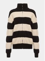 A jaqueta gomos combina conforto, aconchego e muito estilo. Feita em tricô, a peça tem estrutura almofadada, modelagem regular e fechamento em zíper. A gola alta e as listras em contraste completam o visual esportivo da peça.