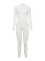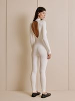 Uma peça única em todos os sentidos. O macacão canelado é versátil, elegante e abraça o copo sem marcar. Ideal para criar sobreposições com casacos columosos, a peça-desejo da temporada tem um charmoso decote redondo nas costas e gola chaminé. Sexy e elegante na medida certa.