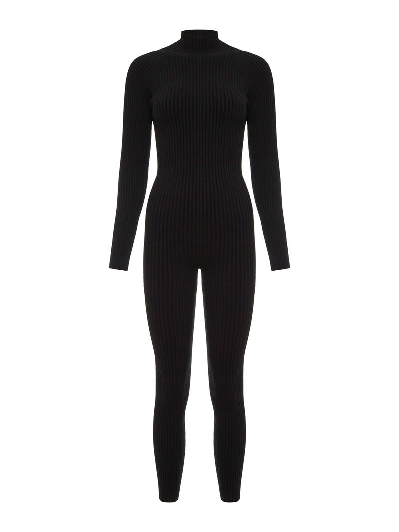 Uma peça única em todos os sentidos. O macacão canelado é versátil, elegante e abraça o copo sem marcar. Ideal para criar sobreposições com casacos columosos, a peça-desejo da temporada tem um charmoso decote redondo nas costas e gola chaminé. Sexy e elegante na medida certa.