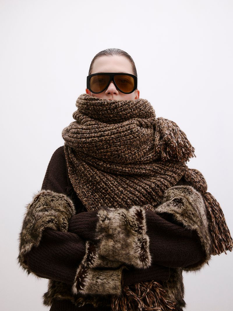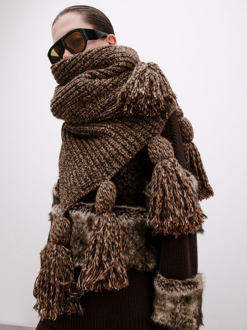 Toque artesanal com bossa contemporânea. A manta em tricô ganha charme extra com a textura em ponto pérola e o acabamento em máxi pompons. Um statement essencial para os dias frios.