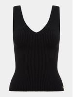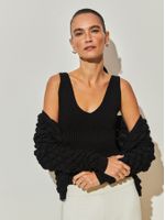 A regata canelada - best seller das nossas coleções - ganha uma nova versão, com decote em V, alças mais finas e trama que desenha o corpo. É uma tela em branco para brincar com acessórios e sobreposições.
