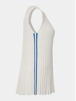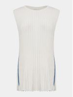 Leve, gráfica e fluida. A regata Anselmi + Ucha Meirelles combina o frescor do modal com a sofisticação da trama plissada. O shape evasê valoriza o movimento, e as listras em contraste surpreendem como um detalhe moderno e inesperado na lateral. Uma peça versátil, perfeita para atualizar o look com estilo.