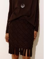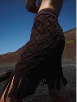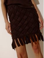 Com textura em relevo inspirada no trabalho de cestaria, a saia curta Janubio combina estrutura e movimento em uma proposta contemporânea. A modelagem reta e o cós elástico garantem conforto, enquanto as franjas na barra adicionam leveza ao visual. Um statement de verão com estética artesanal e visual hipnotizante.