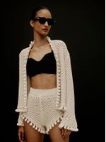 Prático e fresquinho (sim!), o short Brisa tem cintura alta elástica e modelagem cavada. Com pontos inspirados no feito à mão, a peça traz um perfume vintage aos looks. Combine com a blusa no mesmo estilo para um pós-praia boho chic.