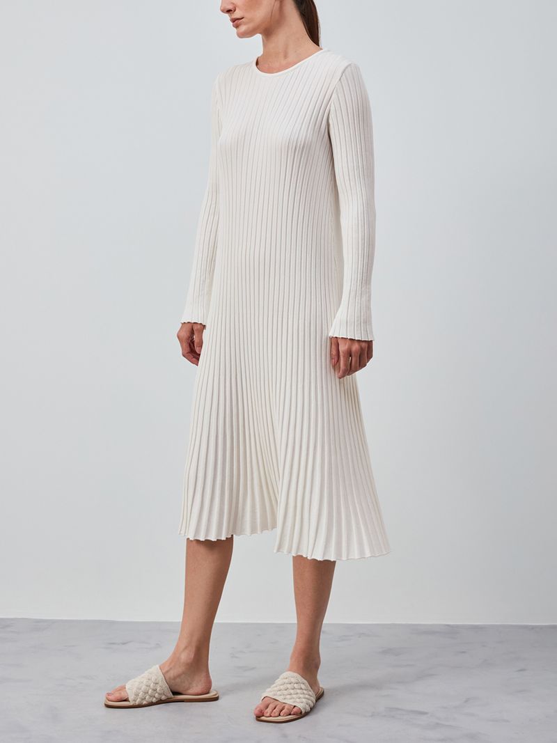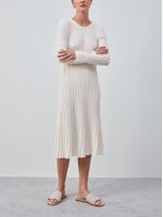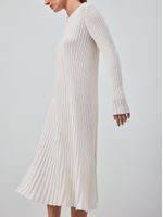 O Vestido Anselmi + Consuelo Blocker Coloca a Beleza do Tricô em Movimento Graças Ao Efeito Plissado da Trama e o Shape Evasê da Saia. o Comprimento Midi Arremata o Visual Elegante da Peça, Que Tem o Visual Perfeito para Compor Os Looks Mais Elegantes da Temporada.