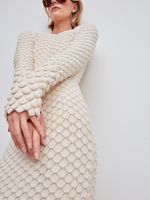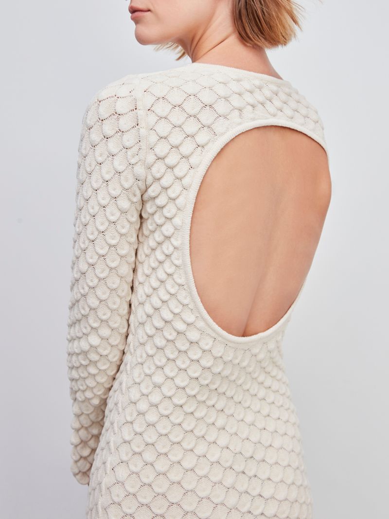 O novo vestido escamas traz a nossa trama-desejo em uma versão ainda mais irresistível. A peça possui comprimento midi, manga longa e um sofisticado decote nas costas. A poderosa construção da trama abraça o corpo sem marcar, trazendo volume e textura para looks sofisticados.