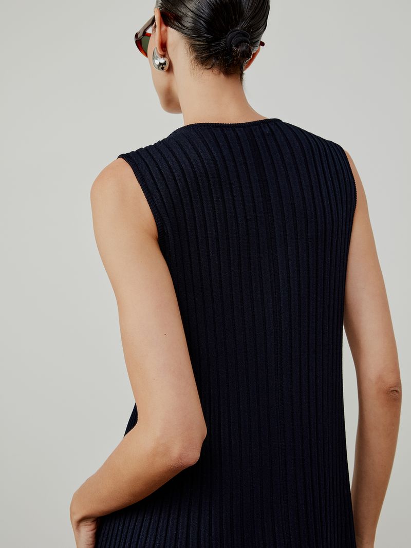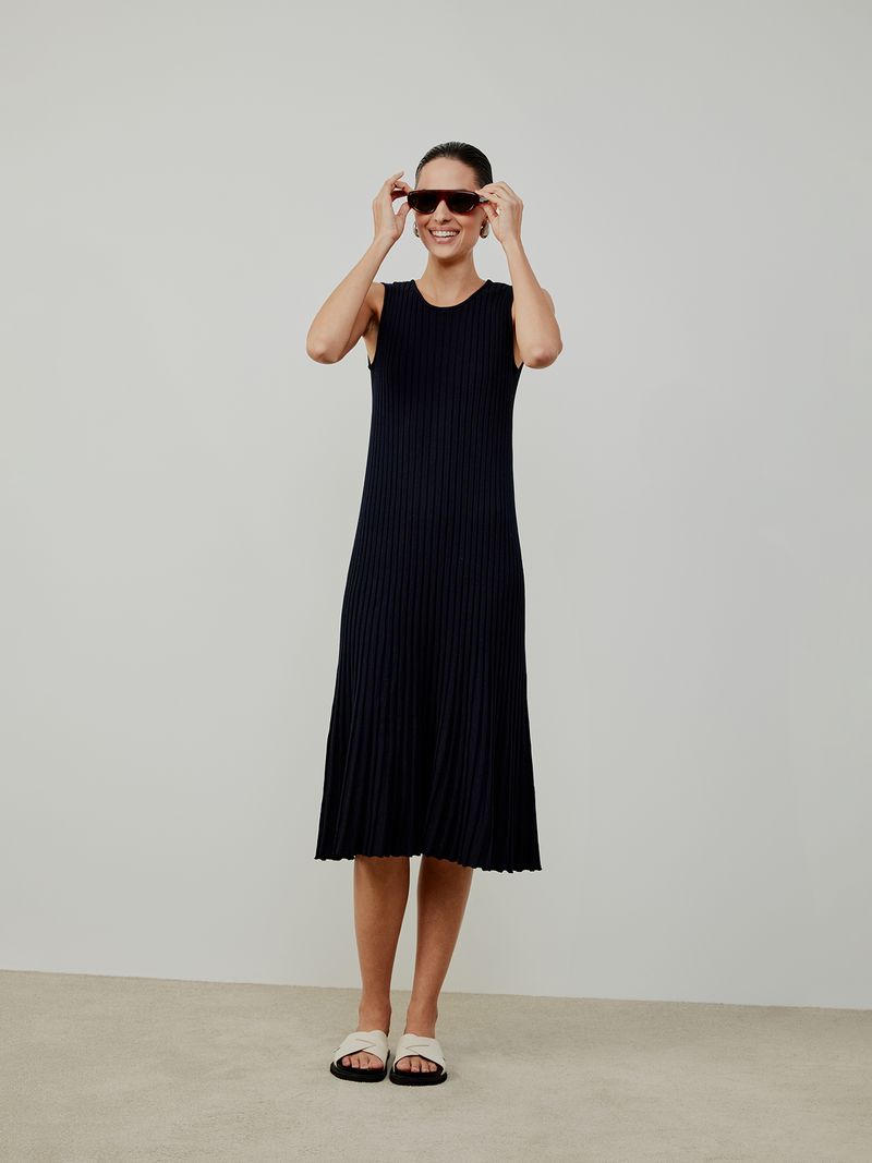 Leve e versátil, o vestido regata coloca a beleza do tricô em movimento com efeito plissado e modelagem levemente evasê. O comprimento midi completa o visual sofisticado da peça, que tem a medida certa para compor looks atemporais e elegantes.