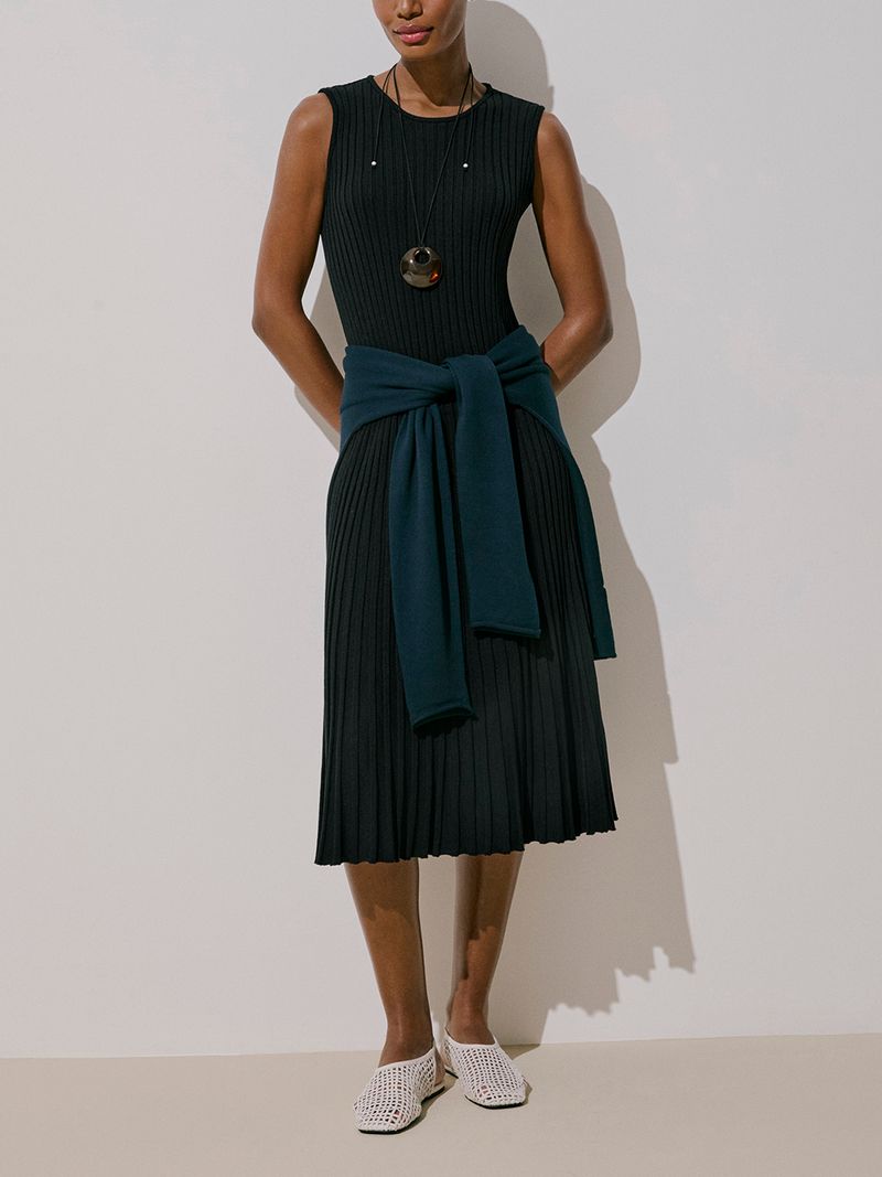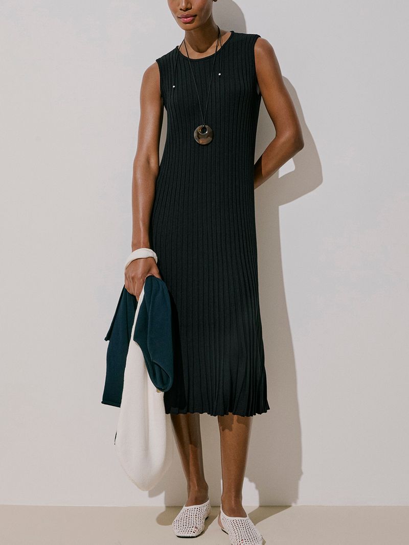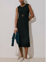 Leve e versátil, o vestido regata coloca a beleza do tricô em movimento com efeito plissado e modelagem levemente evasê. O comprimento midi completa o visual sofisticado da peça, que tem a medida certa para compor looks atemporais e elegantes.