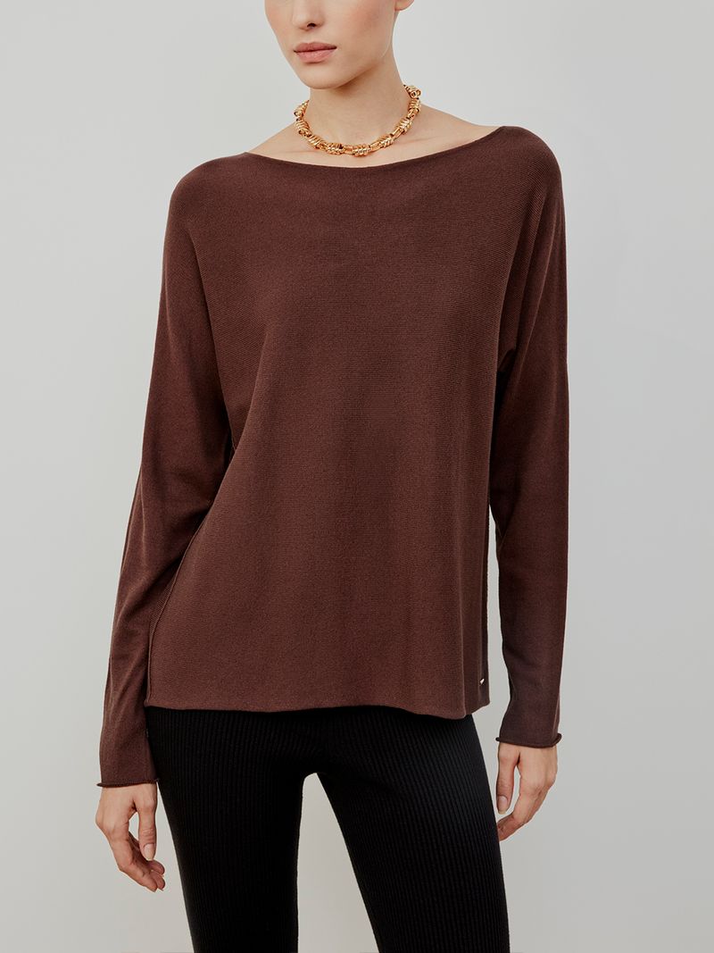 Created in partnership with influencer Consuelo Blocker, the Anselmi blouse is synonymous with comfort and elegance. The seamless knit has a wide shape, a canoe neckline and a perfect fit on the body. Combine with the pants in the same tone for a monochrome production full of charm