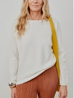 Created in partnership with influencer Consuelo Blocker, the Anselmi blouse is synonymous with comfort and elegance. The seamless knit has a wide shape, a canoe neckline and a perfect fit on the body. Combine with the pants in the same tone for a monochrome production full of charm