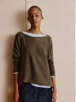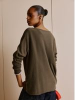 Created in partnership with influencer Consuelo Blocker, the Anselmi blouse is synonymous with comfort and elegance. The seamless knit has a wide shape, a canoe neckline and a perfect fit on the body. Combine with the pants in the same tone for a monochrome production full of charm