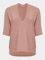 Comfort is always at a premium, no matter the season. Made in Modal, the V-neck blouse is knitted on special machines, leaving it practically ready and without any seams. Its wide shape is democratic and makes a harmonious and elegant set with our knitted pants.