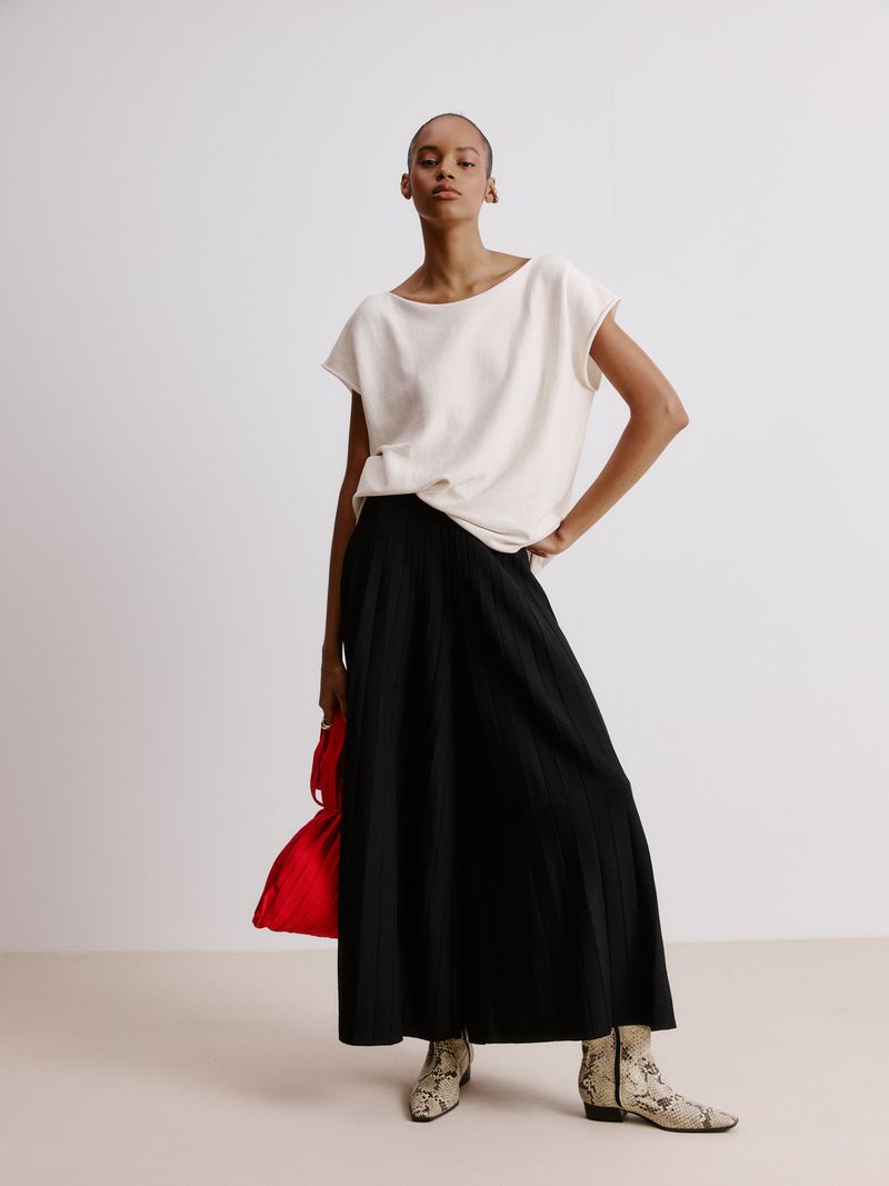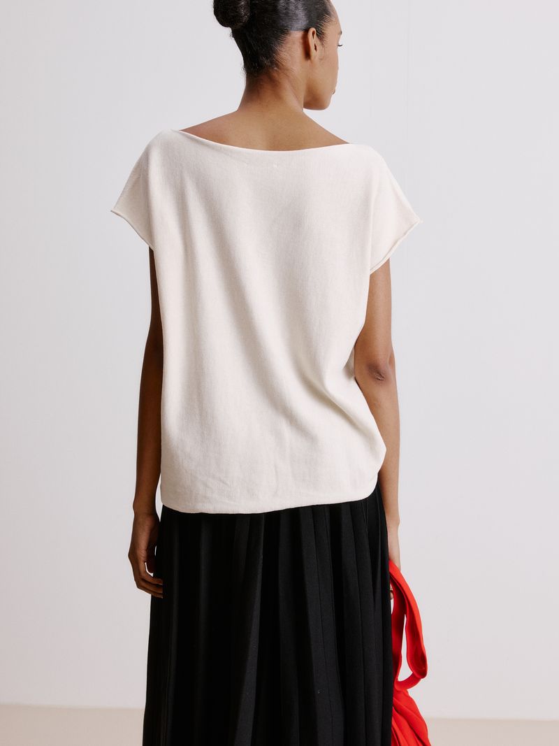 Basics Are a Surefire Choice for Any Season. The Boat Neck Top Combines the Comfort of Cotton with a Loose Fit to Create a Versatile and Relaxed Look. Pair with the Knit Trousers in the Same Shade for a Complete Comfy Look.