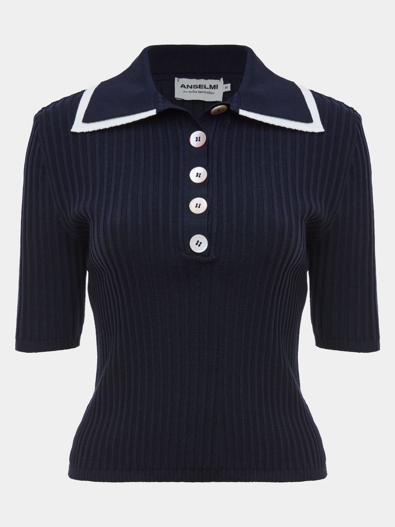 CollabsFemininoNovidadesBlusasUcha meirellesAnselmi Double Collar Polo Shirt + Ucha Meirelles Midnight Blue
