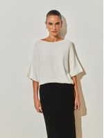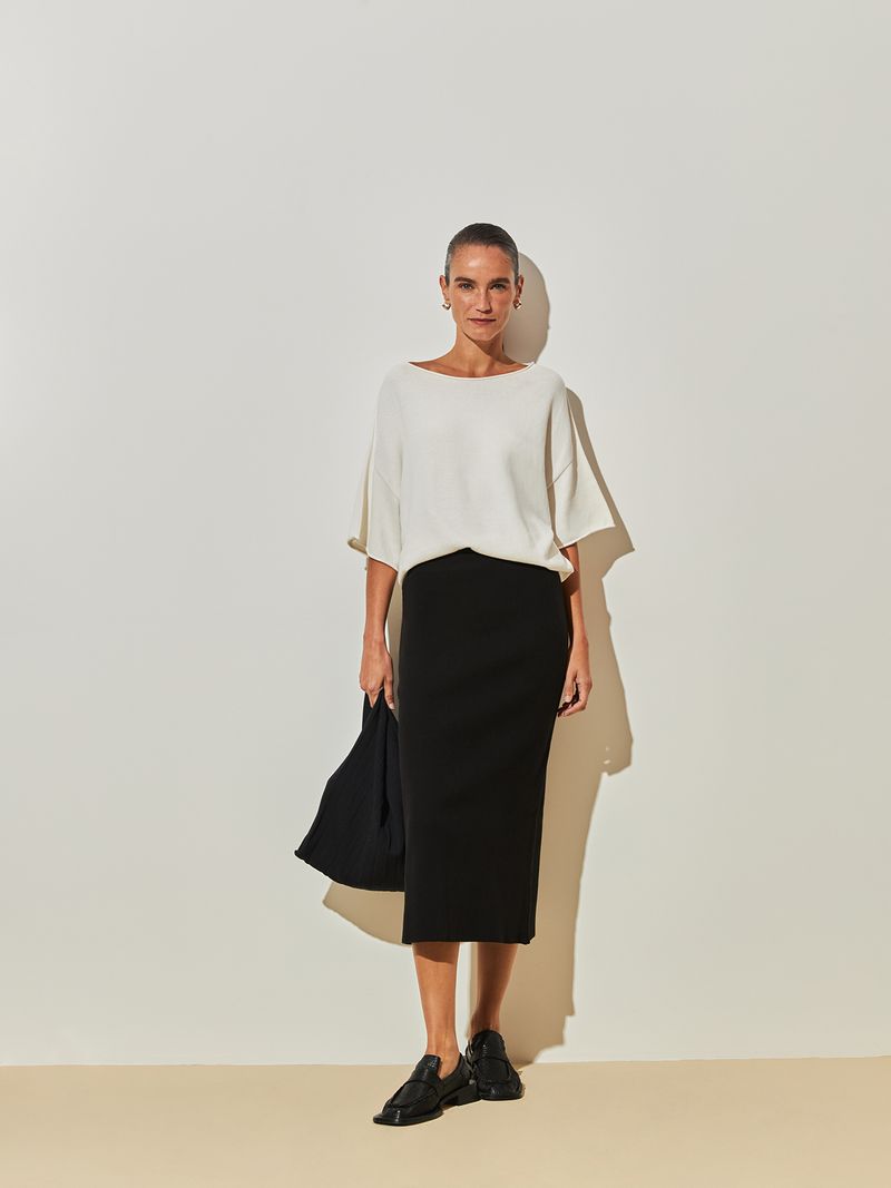 Vibrant colors contrast with the light texture of the Anselmi + Ucha Meirelles blouse. With a loose fit and boat neckline, the plain weave piece is perfect for creating comfortable and elegant looks. Combine it with the pleated skirt in the same tone for a sophisticated and stylish monochromatic look.