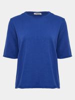Basic Abyssal Blue Roll-Sleeve Blouse