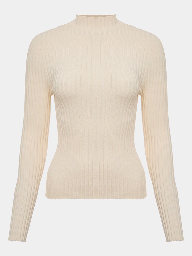 FemininoBlusasProdutos 3dCru Chaminé Neck Ribbed Blouse