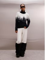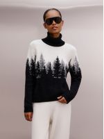 Made of jacquard, the Névoa pullover is one of the key pieces of the Après-ski collection. The pattern refers to the mountain landscape and brings a vintage touch to winter outfits. Without a doubt, a new classic in your wardrobe