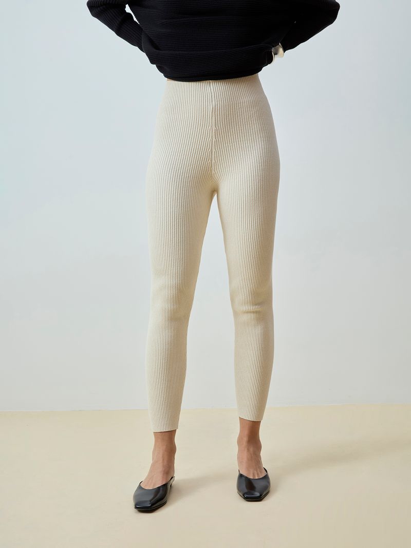 Made of knitted fabric, the basic legging has a tight fit, a high waist and a straight hem finish.