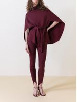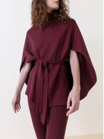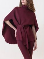 With clean lines and elegant fit, the minimal cover combines structure and fluidity. The wide fit gains definition with the tie at the waist, creating a sophisticated silhouette. The chimney collar completes the look with timeless charm