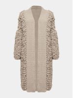 A Powerful Knit is the Key Piece to Warm Up Your Looks. With Embossed Fringes, the Long Coat Brings Volume and Texture to Looks, Recovering the Coziness of Artisanal Weaves in a Maximalist Version.