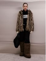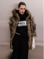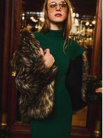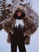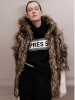 Soft, warm and full of presence. The short faux fur coat has a regular fit, hood, inner lining and medium length. Ideal for colder days, it combines a cozy touch with visual statement, a perfect choice for urban or travel looks.