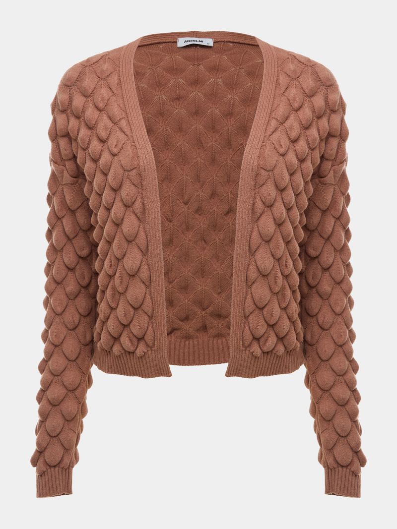 From third piece to protagonist of the look. The long-sleeved jacket has a fitted design and a scale weave weave, which brings volume and texture to everyday looks. Combine with plain knits to balance the look of the piece.