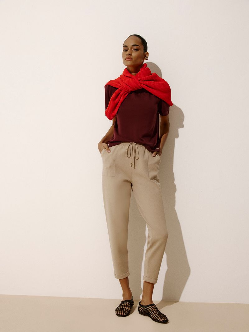 Anselmi knit pants are a year-round desire. Made of cotton threads with a touch of elastane and an elasticated waist, the piece offers unparalleled comfort and total freedom for your movements. The Italian hem (folded) is loose at ankle height to wear with flats, high heels or sneakers.
