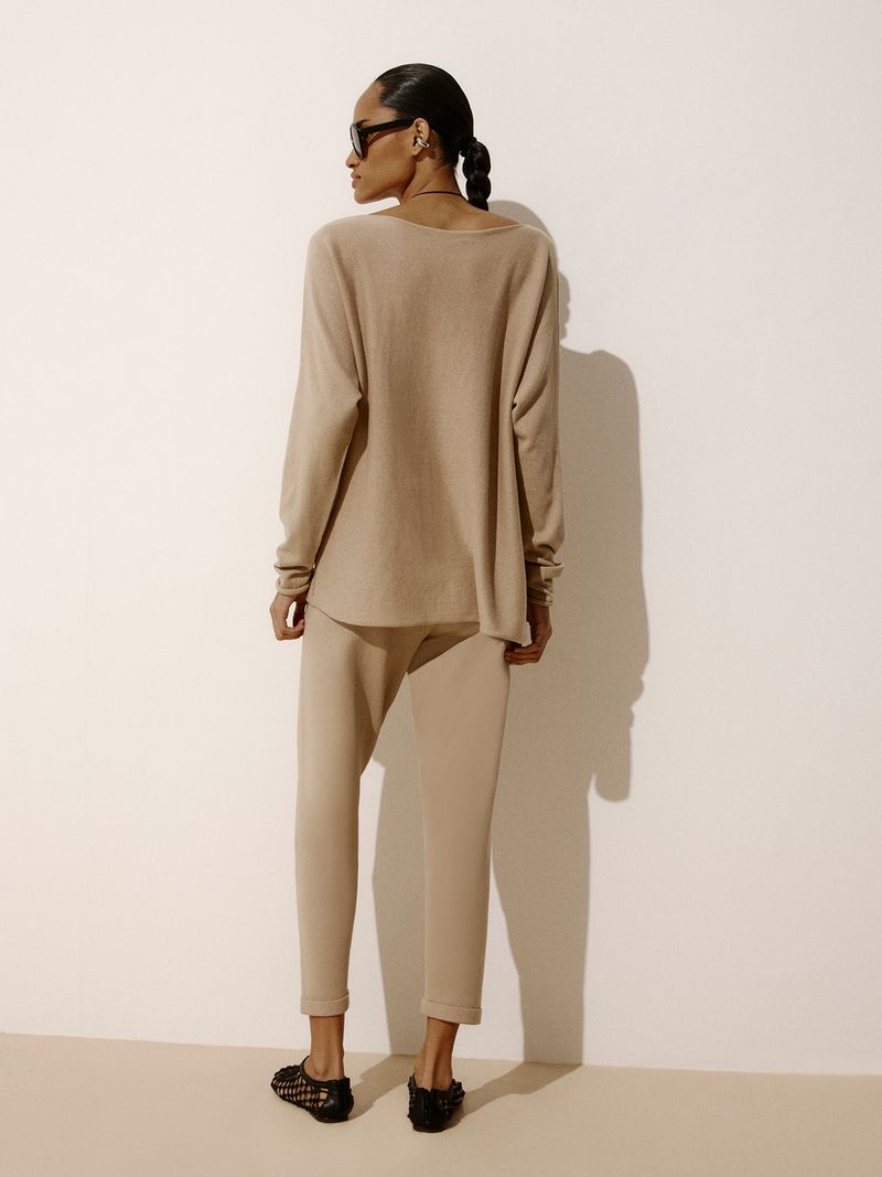 Knit Trousers with Italian Hem Beige