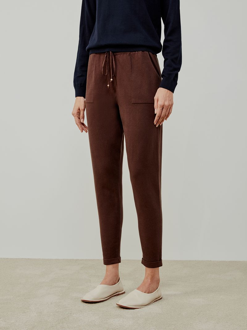 FemininoCalçasChocolate Italian Hem Knit Trousers