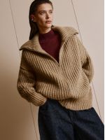 The large jacket focuses on an uncomplicated and cozy look to warm up days on the mountain. The pearl stitch texture brings volume to the garment, while the zipper closure adds functionality to the look. Ideal for casual overlays and urban productions with a