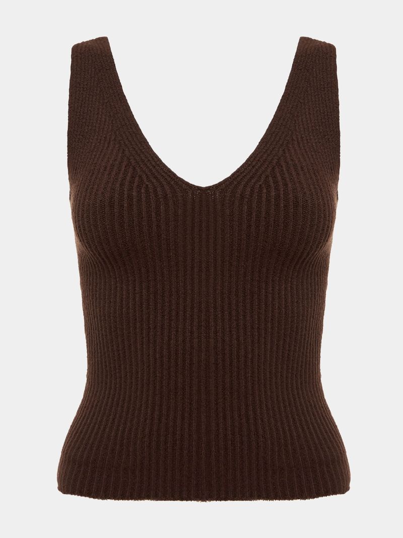 The ribbed tank top - best seller in our collections - gets a new version, with a V-neckline, thinner straps and a weave that contours the body. It's a blank canvas to play with accessories and layering.