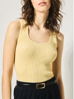The ribbed tank top - best seller in our collections, gets a new version with a U-neckline, wider straps and a weave that hugs the body. It's a blank canvas to play with accessories and layering.