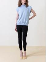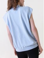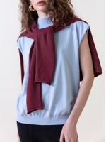 The sleeveless blouse gains sophistication with its chimney collar and impeccable cotton drape. Versatile and minimalist, it is perfect for layering or as the main feature in mid-season looks.
