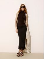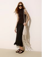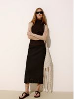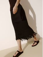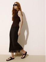 With light fringes on the hem, the midi skirt is perfect for adding movement and texture to outfits. The garment, made of 100% cotton, has an elastic waistband and offers a fluid and comfortable fit that accompanies you