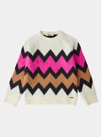 Vibrant colors and fun zigzags transform this sweater into the darling of cold outfits. With a loose collar and comfortable fit, it warms the little ones with great style. The jacquard stitch enhances the contrast of the colors and brings a modern retro touch, ideal for playing in the snow with charm.